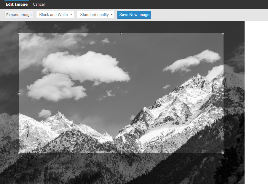 If you have chosen to resize or crop the image as well, you will need to click and drag the area you want to be cropped to, which you can then modify by clicking the drag handles on the corners: